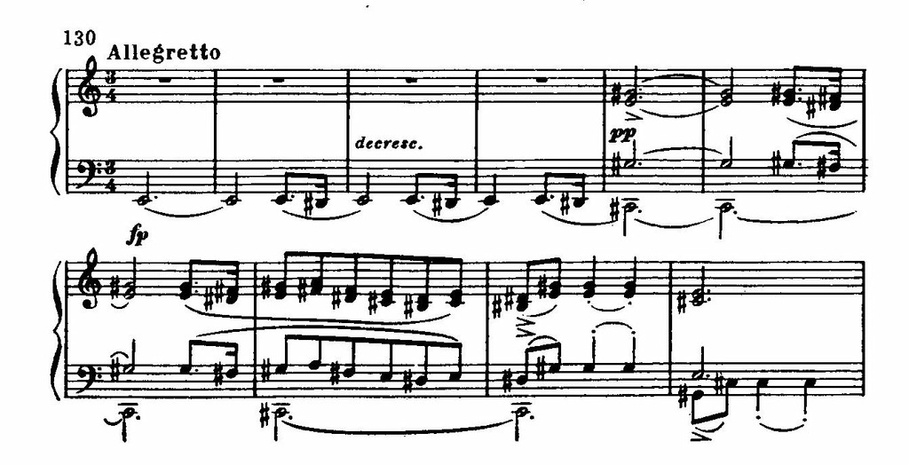 Чудесные модуляционные приемы развития создают образ большой психологической тонкости (см. пример 130).