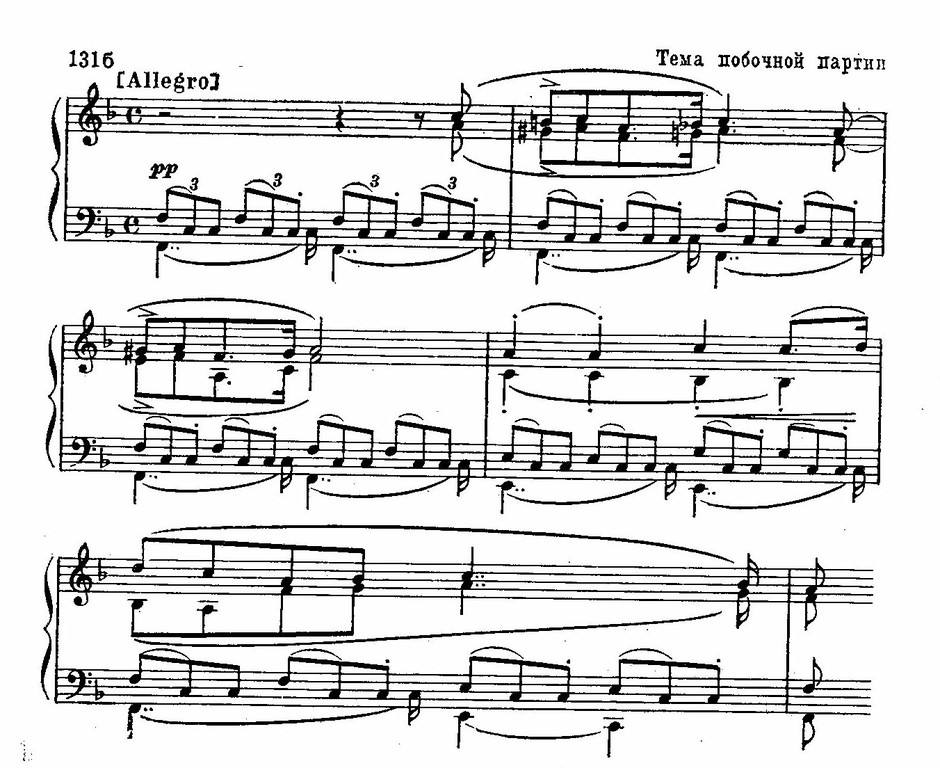 Первая часть отличается компактностью, достойной «Неоконченной симфонии». Тема главной партии настолько напоминает песню, что кажется целиком перенесенной из романса:
