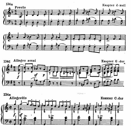 В основе финала квартета d-moll — плясовой мотив с характерным переменным ладом; в финале квартета G-dur — тарантелла, в финале квинтета — марш с явным венгерским колоритом:
