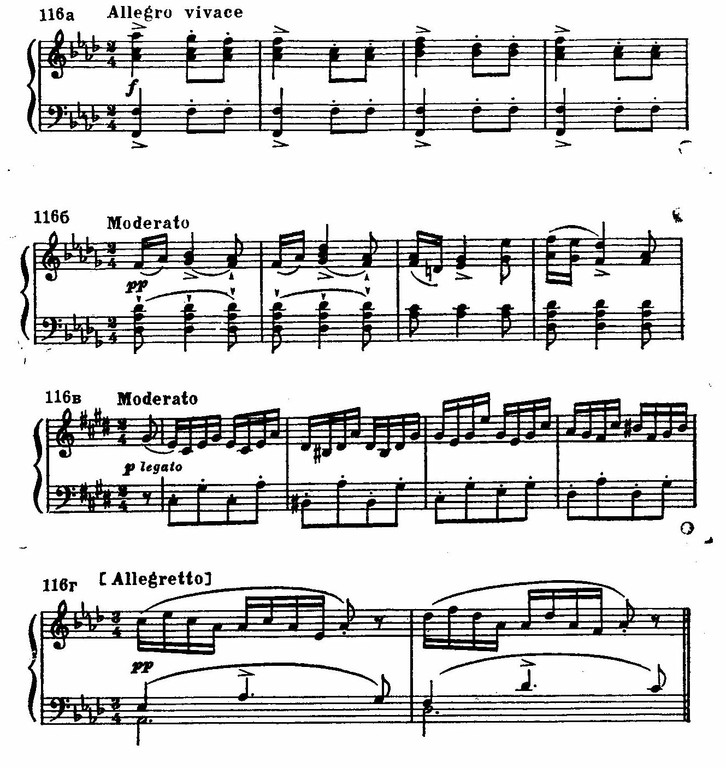 Новое в фортепианной музыке Шуберта прежде всего обнаруживается в его танцах — преимущественно вальсах (в том числе лендлерах) и маршах.