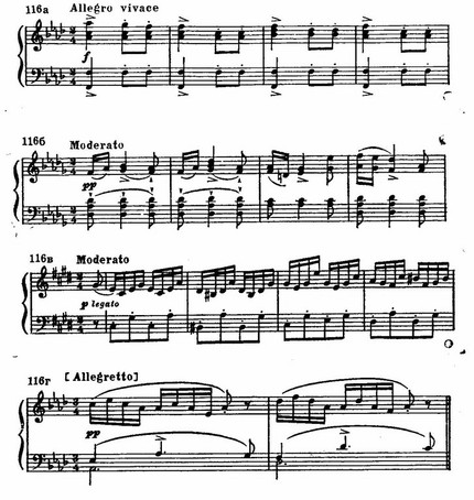 Почти все фортепианные пьесы Шуберта построены на основе классицистcкой периодической структуры. Импровизированные приемы изложения им не свойственны.