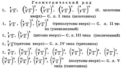 Теоретич. объяснение С. л. получают в русле эстетич. традиции теории пропорций, что ставит их в закономерную связь с др. типами ладовых систем — ладами мажорно-минорной системы и ср.-век. ладами. Общее для всех объяснение состоит в том, что каждый тип лада в зависимости от своего ЦЭ соответствует одной из известных с древности числовых прогрессии — арифметической, гармонической и геометрической. Образуемые ими числовые ряды, дающие ЦЭ каждой из этих систем, приведены в расчёте на коэффициенты чисел. колебаний.