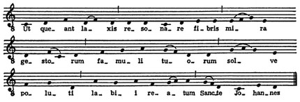 Начальные слоги каждой из «строк» текста он применил в качестве назв. ступеней гексахорда. Суть этого метода заключалась в выработке прочных ассоциаций между названиями и слуховыми представлениями ступеней гексахорда. В последующее время слоги Гвидо в ряде стран, в т. ч. в СССР, стали использоваться для обозначения абсолютной высоты звуков; в системе самого Гвидо слоговое назв. не связывалось с одной определ. высотой; напр., слог ut служил назв. I ступени неск. гексахордов: натурального (c), мягкого (f), твёрдого (g). Ввиду того что мелодии редко укладывались в пределы одного гексахорда, при С. часто приходилось переходить в др. гексахорд (мутация). Это было связано с изменением слоговых назв. звуков (напр., звук, а имел в натуральном гексахорде назв. la, a в мягком гексахорде — mi). Первоначально мутации не считались неудобством, поскольку слоги mi и fa всегда указывали место полутона и обеспечивали правильность интонирования (отсюда крылатое определение ср.-век. теории музыки: «Mi et fa sunt tota musica» — «Ми и фа — это вся музыка»). Введение слога si для обозначения VII ступени звукоряда (X. Вальрант, Антверпен, около 1574) сделало излишним мутации в пределах одной тональности. Семиступенную «гамму через си» применяли «начиная от звука любого буквенного обозначения» (Э. Лулье, Париж, 1696), то есть в относительном значении. Такая сольмизация стала наз. «транспонирующей», в отличие от прежней «мутирующей».