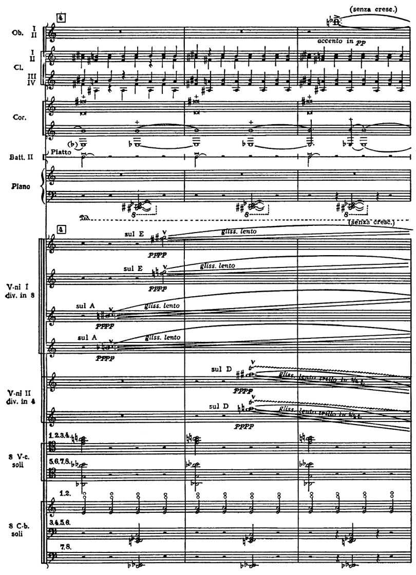 В др. случаях сонорная трактовка гармонии выступает как оперирование созвучиями тембрового назначения («сонорами»). Таков начальный «аккорд-сонор» в «Прометее» Скрябина, осн. аккорд в пьесе Веберна ор. 10 No 3 для оркестра, разноголосая полигармония перед репризой вступления к балету «Весна священная».