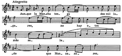 Такое ритмическое разнообразие порождалось неразрывной связью пластического и музыкального начал — танцевального и вокального. Глинка говорил, что недостаточно знать мелодии песен, надо знать и как под них танцуют. Для этого он специально обучался пляске, «потому что одно и другое необходимо для совершенного изучения народной испанской музыки».