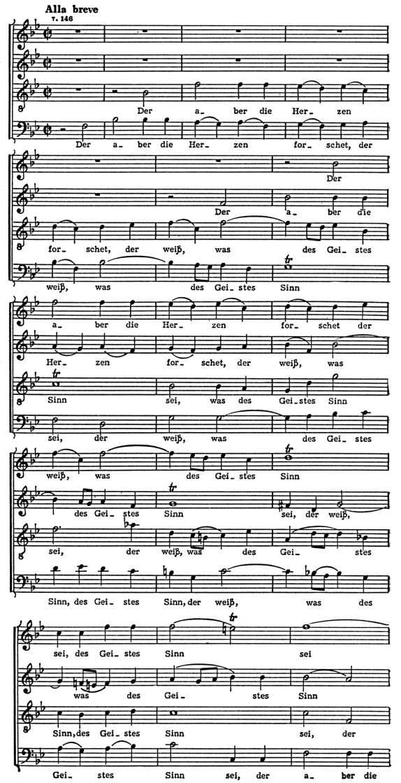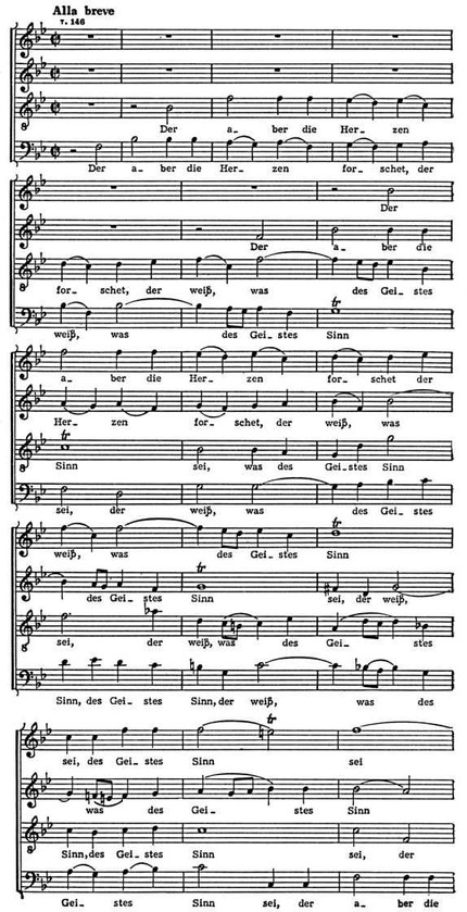 Нередко в фуге образуется несколько С., складывающихся в определ. систему (фуги dis-moll и b-moll из 1-го тома «ХТК»; фуга c-moll Моцарта, K.-v. 426; фуга из интродукции в опере «Иван Сусанин» Глинки). Нормой является постепенное обогащение, усложнение стреттных проведений. Напр., в фуге b-moll из 2-го тома «ХТК» 1-я (такт 27) и 2-я (такт 33) С. написаны на тему в прямом движении, 3-я (такт 67) и 4-я (такт 73) — в полном обратимом контрапункте, 5-я (такт 80) и 6-я (такт 89) — в неполном обратимом контрапункте, заключительная 7-я (такт 96) — в неполном обратимом с удвоениями голосов; С. этой фуги приобретают сходство с рассредоточенным полифонич. вариационным циклом (и тем самым — значение «формы 2-го порядка»). В фугах, содержащих более одной С., естественно рассматривать эти С. как первоначальное и производные соединения (см. Сложный контрапункт). В нек-рых произв. сложнейшая С. фактически является первоначальным соединением, а остальные С. — как бы упрощёнными производными, «извлечениями» из первоначального. Напр., в фуге C-dur из 1-го тома «ХТК» первоначальное — 4-гол. С. в тактах 16–19 (зона золотого сечения), производные — 2-, 3-гол. С. (см. такты 7, 10, 14, 19, 21, 24) с вертикальными и горизонтальными перестановками; можно предположить, что композитор начал сочинение этой фуги именно с оформления самой сложной С. Положение С., её функции в фуге многообразны и по существу универсальны; кроме упомянутых случаев, можно указать на С., целиком определяющие форму (двухчастная фуга c-moll из 2-го тома, где в прозрачной, практически 3-гол. 1-й части С. отсутствуют, а 2-я часть от такта 14 с преобладанием вязкого четырёхголосия целиком состоит из С.), а также на С., выполняющие роль разработки (фуга из 1-й оркестровой сюиты Чайковского) и активного предыкта (Kyrie в Реквиеме Моцарта, такты 34–38). Голоса в С. могут вступать в любой интервал (см. пример ниже), однако простые соотношения — вступления в октаву, в квинту и кварту — наиболее употребительны, поскольку в этих случаях сохраняется ладотональность темы.