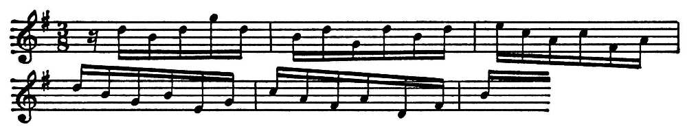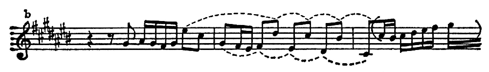 Подобного рода движение сообщает мелодике С. с. гармонич. полнозвучность: в мелодиях образуются т.н. скрытые голоса, и из скачков по аккордовым звукам легко выделяются очертания гармонич. последований.