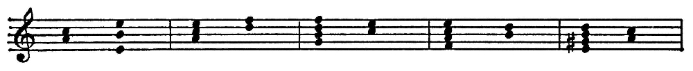 Гармоническая схема скрытого голосоведения в теме органной фуги a-moll И. С. Баха.