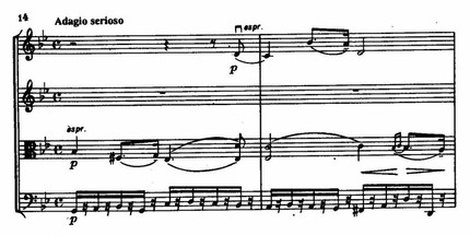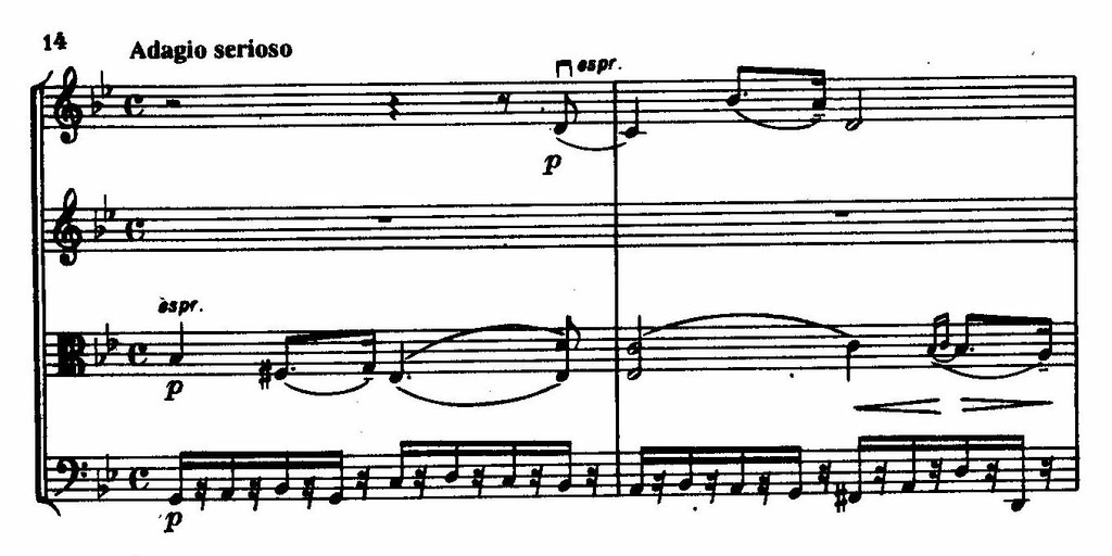 Вырастание тематизма квартета си-бемоль мажор из одного интонационного источника можно наблюдать уже на стадии эскизов в нотной тетрадке с набросками тематизма всех частей.