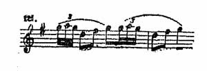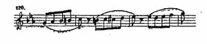 Для всех вообще пьес этого сборника характерны короткие штрихи и приемы позиционной техники, когда рука переносится с места на место в моментах паузирования или в перерывах между короткими лигами, сохраняя почти неизменное, первоначальное положение пальцев. Примером подобного позиционного перемещения, коротких штрихов и частого паузирования может служить такой тип изложения: