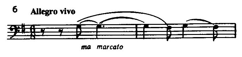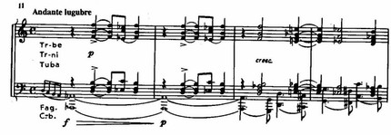 Эпиграфом к этому шестнадцатитактовому вступительному построению могут служить слова устрашающей надписи, которую Данте поместил на вратах ада: «Оставь надежду всяк сюда входящий». Далее следует еще большой субдоминантовый предыкт к первому разделу (ля минор при основном строе ми минор), где подготавливается его тематический материал. При этом целостная развернутая тема как таковая отсутствует и заменяется группой кратких мотивов, представляющих собой различные модификации интонации стона, вздоха, жалобы.