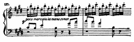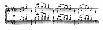 И у Чайковского, и у многих других композиторов можно найти десятки примеров октавного изложения мелодии, но такой рисунок, когда мелодия исполняется двумя руками в октаву, встречается в фортепианной литературе очень редко: