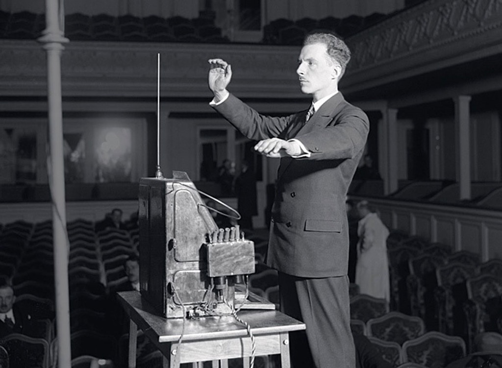 Терменвокс — первый советский электромузыкальный инструмент. Изобретён Л. С. Терменом в 1920. В первом варианте одноголосный; применяемые электронные схемы были радиоламповые, позже — транзисторные. В Т. электрич. колебания звуковых частот генерируются по методу биений между колебаниями двух высокочастотных генераторов. Схема Т. содержит два генератора высокой частоты, из к-рых один работает на фиксированной частоте, а частота второго генератора определяется расстоянием между правой рукой музыканта и небольшой вертикальной штыревой антенной, подключённой к его колебат. контуру. Рука и антенна представляют собой как бы воздушный конденсатор, ёмкость к-рого оказывается приложенной параллельно ёмкости конденсатора, входящего в колебат. контур генератора. Изменяя расстояние правой руки от антенны, исполнитель тем самым повышает или понижает частоту второго генератора, соответственно меняя частоту комбинационных тонов, т. е. звуковую частоту. Из множества возникающих т. о. тонов используются 3–4 октавы. Тембр звука Т. (может напоминать тембр певческого голоса, скрипки, виолончели, флейты, трубы, саксофона, англ. рожка, разл. щипковых и удар. инструментов) устанавливается переключением соответствующих регистров. Динамические оттенки регулируются с помощью движений левой руки над левой антенной.