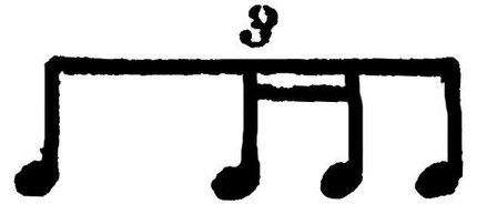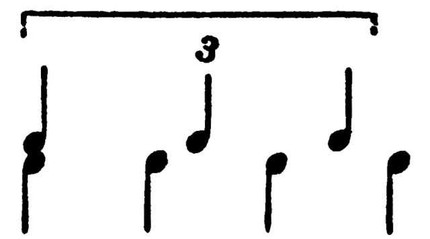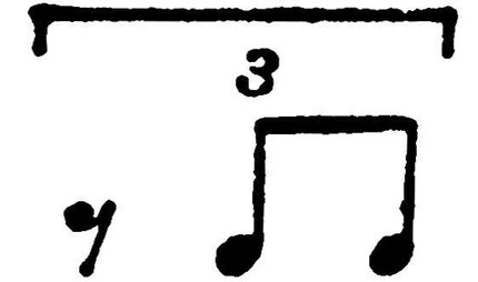 Т. обозначается цифрой 3, к-рая пишется в нотах над или под триольной группой. Т. может встретиться и в сочетании с четырьмя долями осн. ритмич. деления в др. голосе, напр.: