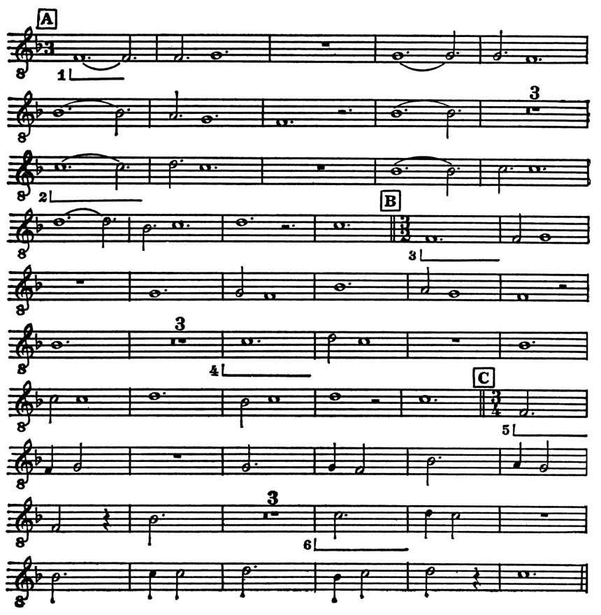 Дж. Данстейбл. Cantus firmus из мотета Christe sanctorum decus (контрапунктирующие голоса опущены).