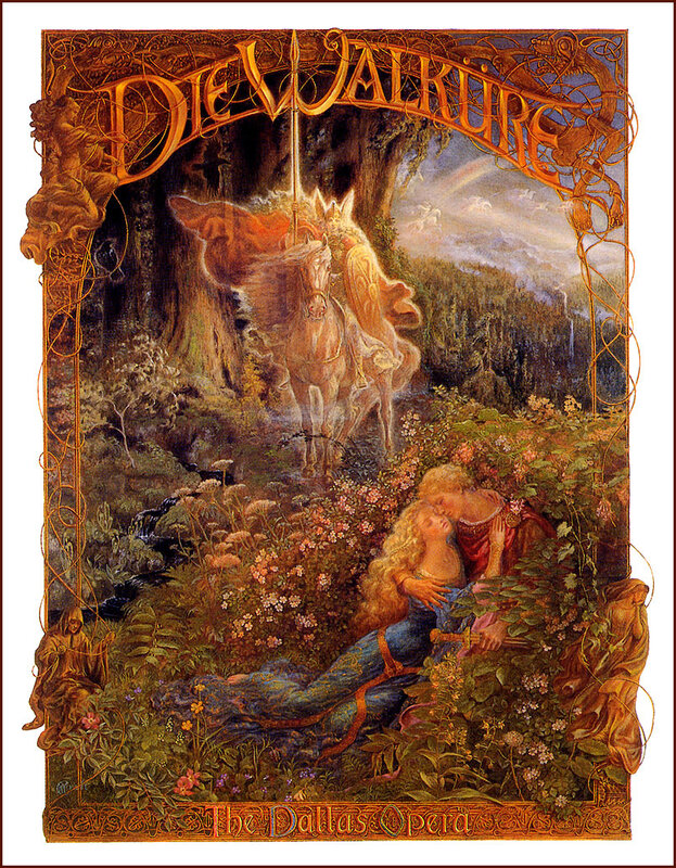 Если не быть слишком педантичным, то можно согласиться, что между событиями «Золота Рейна» и «Валькирии» лежит отрезок времени примерно в четверть столетия, в течение которого Вотан множил мир своим незаконнорожденным потомством. У него была продолжительная любовная связь с богиней земли Эрдой, родившей ему девять дочерей, выросших в атлетических всадниц, наделенных множеством полномочий. После сражений они прилетали на поле брани, чтобы подобрать только что убитых героев и поднять их на Валгаллу, где те должны были составить гвардию для охраны чертогов богов. Эти девушки известны как валькирии, и одна из них — тот персонаж, по которому называется эта опера. У Вотана была также любовная связь с безымянной смертной женщиной, произведшей на свет сына и дочь. С этой женщиной он жил под именем Вольфе, пока их дочь не была похищена. Их род называется Вельзунги.