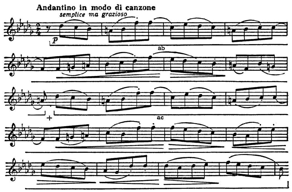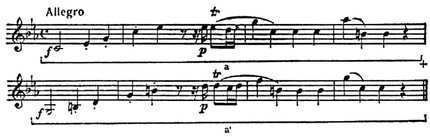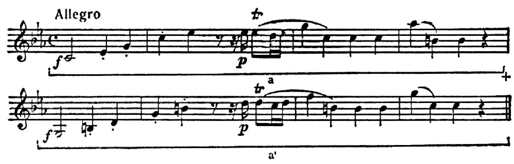 В примере из сонаты Моцарта сходство мелодико-ритмич. рисунка двух построений позволяет представить второе из них как варьирование первого; в отличие от этого в Largo Бетховена предложения связаны только через начальную мелодич. интонацию, продолжение же её в них различно; в Andantino Чайковского применён тот же метод, что и в Largo Бетховена, но с увеличением объёма второго предложения. Во всех случаях характер темы сохраняется, одновременно она обогащается изнутри с помощью развития её исходных интонаций. Величина и количество развиваемых тематических построений колеблются в зависимости от общехудожеств. замысла всего произв.