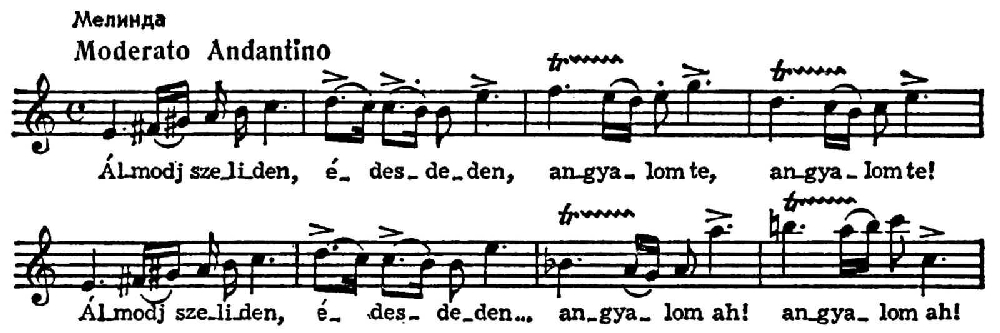 Примером использования старинного В. в совр. венг. музыке может служить антракт из оперы З. Кодая «Хари Янош»: