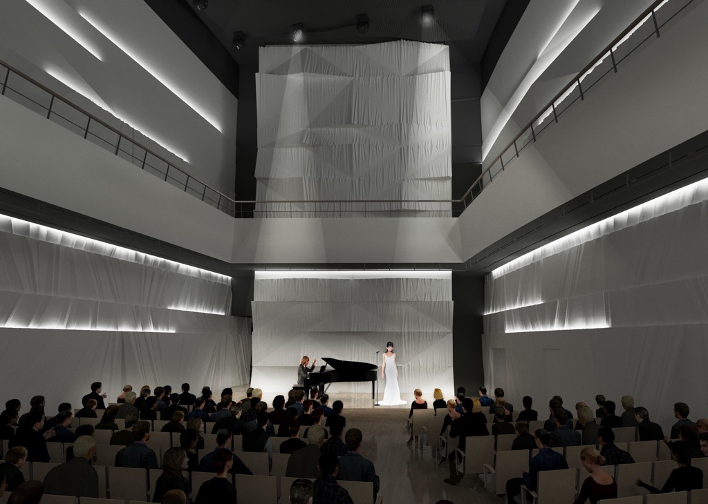 Из фойе нижнего этажа публика попадает в Большой и в Малый залы. Архитектурно они существенно отличаются: рифленые белые стены прямоугольного Малого зала, окантованного стержнем балконных перил, и текучие, «плазменные» линии футуристического Большого зала, подкова которого заворачивается за сцену. Здесь важно все: и комфорт публики, и удобство сцены, и техническое оснащение. Но главное качество зала измеряется натуральной акустикой, которая работает без искусственного усиления звука. Создавалась акустика под руководством выдающегося японского специалиста Ясухисы Тойоты, творца акустики десятков знаменитых залов, в том числе Эльбской филармонии, Сантори-Холла, концертного зала Мариинского театра. Результат его работы в «Зарядье» протестировали крупнейшие российские музыканты: Валерий Гергиев, Михаил Плетнев, Денис Мацуев, Николай Луганский.